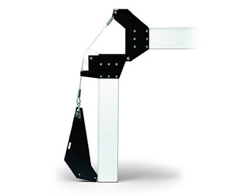 Эти основные элементы конструкции связывает между собой прочный натяжной трос. Применяется шарнир в местах с низким перекрытием и в случае необходимости контролировать проезд транспортных средств, ограничивая их движение по высоте.