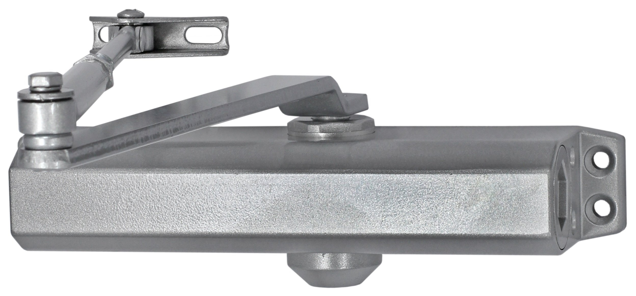 Доводчик двери c тягой EN5, 80 - 110 кг, 1250 мм, 2-х скор., серебряный, монтажные размеры 230х19 мм, -35...+70°C, 248х45х72 мм