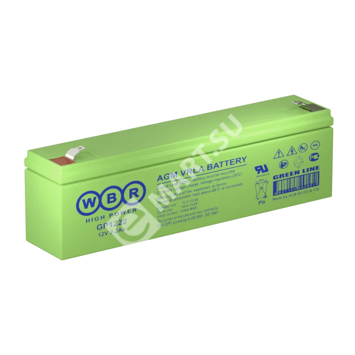 Аккумулятор WBR GP1222 - герметизированная, выполненная по технологии AGM, батарея общего применения со сроком службы до 8 лет в буферном режиме или 260 циклов заряда-разряда в циклическом режиме при 100% разряде. Эта высокоэффективная, перезаряжаемая батарея, не требующая обслуживания в течение всего срока службы.