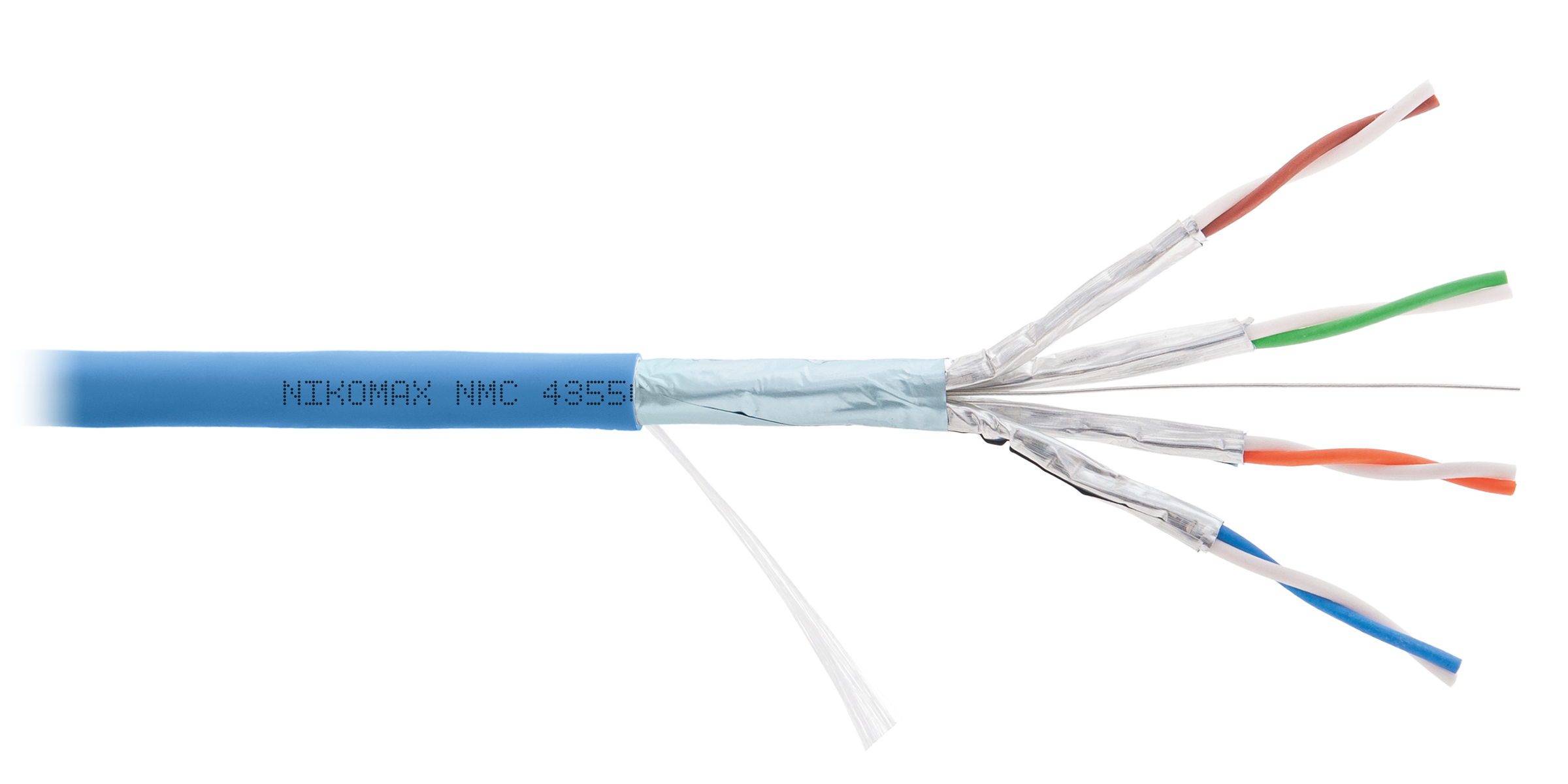 Кабель NIKOMAX F/FTP 4 пары, Кат.6a (Класс Eа), тест по ISO/IEC, 500МГц, одножильный, BC (чистая медь), 23AWG (0,56мм), полимерный материал нг(А)-HF, внутренний, голубой, 500м - гарантия: 5 лет / 15 лет системная