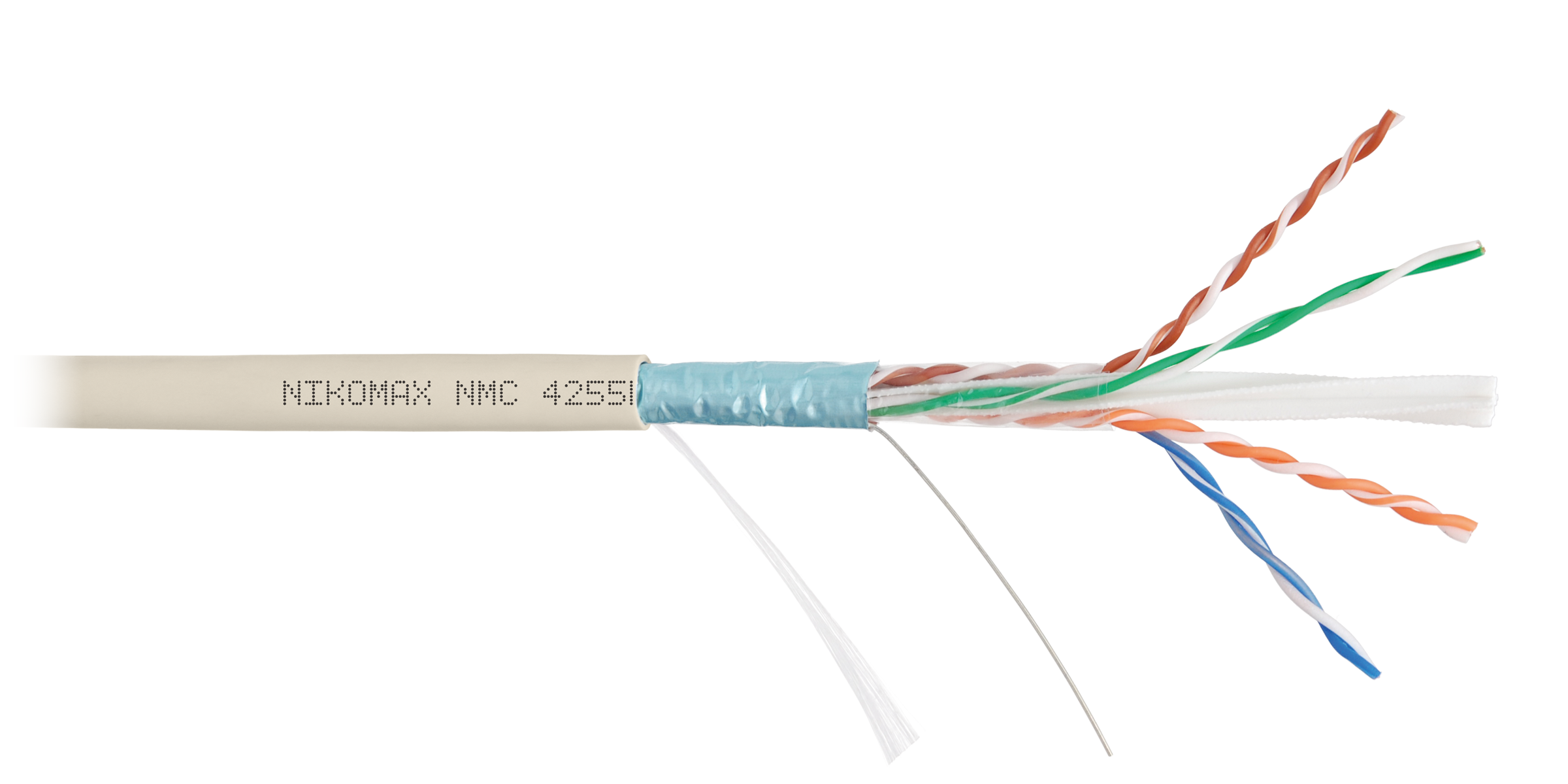 Кабель NIKOMAX F/UTP 4 пары, Кат.6a (Класс Eа), тест по ISO/IEC, 500МГц, одножильный, BC (чистая медь), 23AWG (0,57мм), полимерный материал нг(А)-LSLTx, внутренний, светло-серый, 500м - гарантия: 5 лет / 15 лет системная