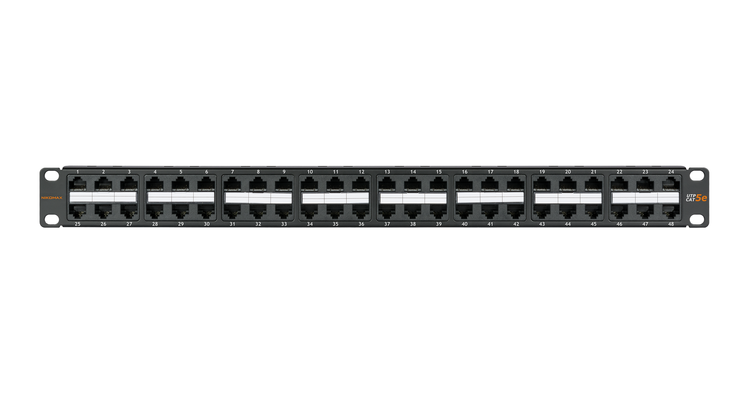 Коммутационная панель NIKOMAX 19", 1U, 48 портов, Кат.5e (Класс D), 100МГц, RJ45/8P8C, 110/KRONE, T568A/B, неэкранированная, с органайзером, черная - гарантия: 5 лет расширенная / 25 лет системная