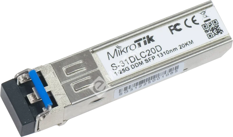 S-31DLC20D это 1.25G SFP трансивер 1310nm с Dual LC разъемом, который предназначен для работы до 20 км в режиме Single Mode fiber connections, с поддержкой DDM. Модуль протестирован и совместим с RB260GS, RB2011LS, RB2011LS-IN, RB2011UAS-IN, RB2011UAS-RM, RB2011UAS-2HnD, RB2011UAS-2HnD-IN CCR1036-12G-4S. Так же, он совместим с не-MikroTik устройствами SFP.